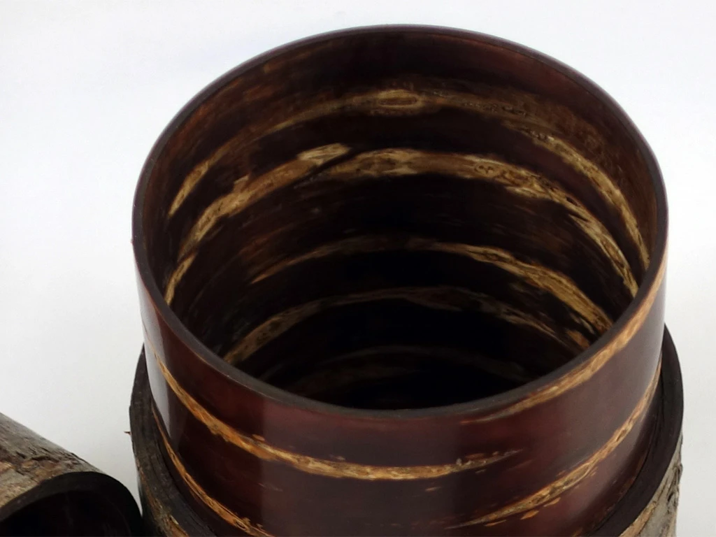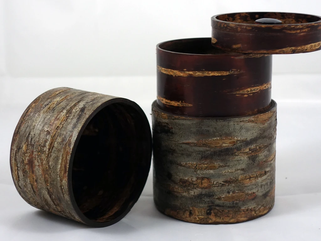 C’est au Nord du Japon, à Kakunodate, qu’on trouve ces objets au revêtement d’écorce de cerisier (« Kabazaiku » en japonais).