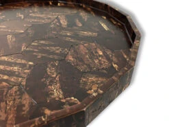Les motifs aléatoires du bois utilisé et la fabrication à la main rendent chaque pièce unique, rendant ces pièces très recherchées pour leur décor à la fois naturel, raffiné et infiniment varié.