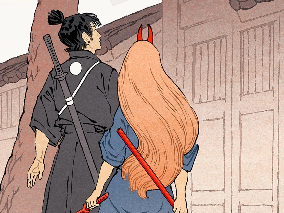 Quant au démon qui fait face aux personnages, il s’agit d’une création personnelle et non d’un personnage tiré du manga, dont les visages sont inspirés de masques de Noh traditionnel.