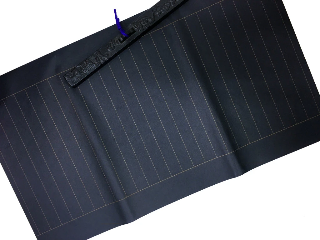Idéales pour la copie de sûtras, ces feuilles en washi ont été teintée en bleu indigo afin de mieux faire ressortir une calligraphie réalisée en « doré », que ce soit à l’or fin ou avec de l’encre doré.