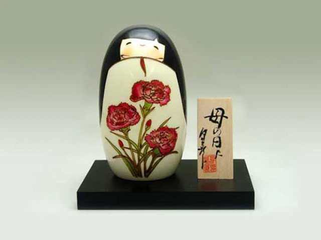 Kokeshi sculptée en l’honneur des mamans rehaussée par un petit socle laqué noir. Fournie avec sa plaquette certificat.