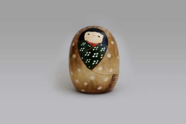 Cette petite kokeshi exprime avec justesse le besoin de chaleur et de confort qui vient avec les premiers froids de l’hiver. C’est certainement de là qu’elle tire son nom.