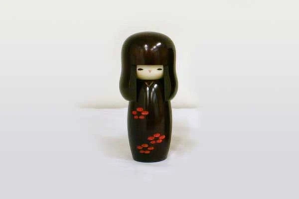 Petite poupée kokeshi aux cheveux bouclés, très originale. Son kimono est décoré de fleurs de cerisier, d’où son nom qui se traduit ‘Tonalités du Printemps’.